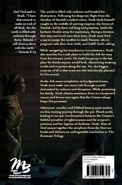 Adventure, wonder, and biblical history await readers on this riveting journey through the pre-Flood world, leading to an epic confrontation between the Creator's faithful preacher of righteousness and the serpent's priestess and her legions of darkness. Noah: Man of God weaves together the storylines from the first two books and delivers an unforgettable conclusion to The Remnant Trilogy.